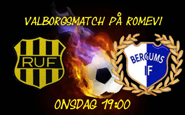 "Om du vill ha gemenskap eller lite spänning då har jag en teori, den lyder kort och gott- åk ut till Romelanda, för där ligger Romevi" Imorgon är det dags igen! 19:00 på Romevi... Kiosken är öppen och förhoppningsvis har vi bra väder! Vi ses på Romevi RUF:s tränarteam har tagit ut följande lag: Lagemyr Kalimanjira - Sjöstedt - Kunzl - M. Persson P. Persson Gabrielsson - David - Johansson - Larsson Sjösvärd (C) Bänken: Marek, H. Björnrud, Elmäng, M. Björnrud, Eiman Heja RUF!